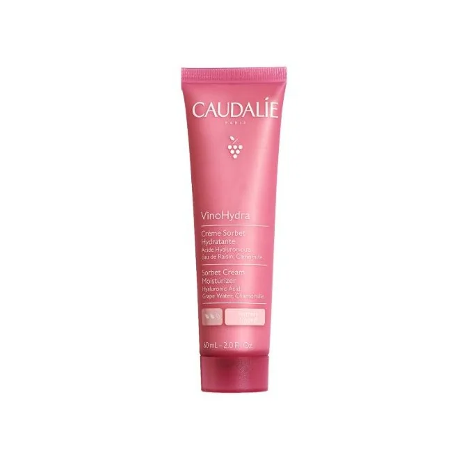 Caudalie Vinosource-Hydra Crema Sorbetto Idratante è una crema viso leggera e rinfrescante con Acqua d'Uva Bio e Acido Ialuronico, ideale per idratare e lenire pelli normali, miste e sensibili. La sua texture "quick break" si assorbe rapidamente per un comfort immediato. Formato: 60 ml