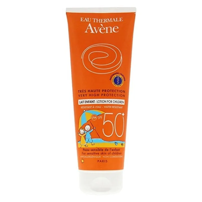 Avene Latte protezione solre Spf 50+ specificamente concepito per il bambino, per la pelle ipersensibile al sole e chiara.