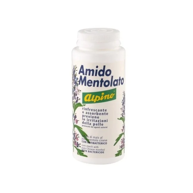 Alpino Amido Mentolato è un classico rinfrescante e lenitivo, ideale per assorbire il sudore e donare sollievo alla pelle irritata o accaldata. Formato: 100 grammi