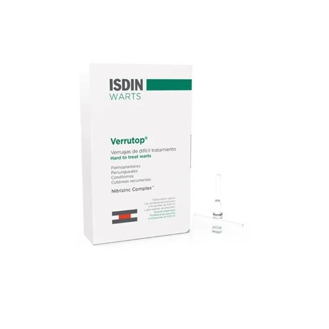 Isdin Verrutop è un prodotto dermatologico specifico per il trattamento delle verruche, compresi i condilomi. Grazie alla sua formula innovativa a base di Nitrizinc Complex, questo prodotto offre un'azione efficace e indolore.