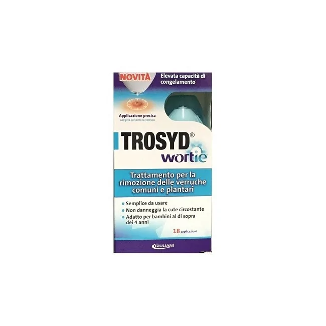 Trosyd Wortie è stato sviluppato per coniugare all'azione mirata la semplicità di utilizzo e la rapidità di applicazione. Agisce congelando la verruca mediante un puntale metallico dalla punta arrotondata che permette un'applicazione mirata del freddo sulla superficie della verruca.