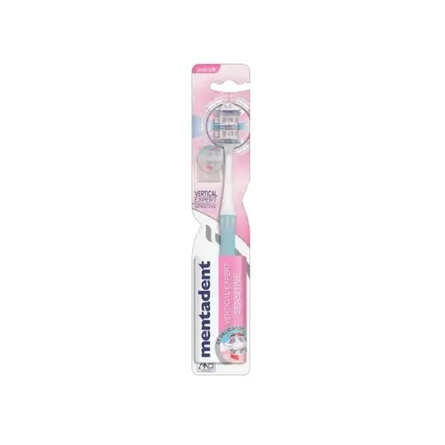 Mentadent Vertical Expert Sensitive aiuta a spazzolare i denti con il corretto movimento verticale, come raccomandato dai dentisti, è ora disponibile con setole soft, per una pulizia verticale 2 volte più delicata rispetto al Vertical Expert con setole medie.