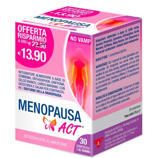 Menopausa Act è un integratore alimentare per contrastare i disturbi legati alla menopausa.