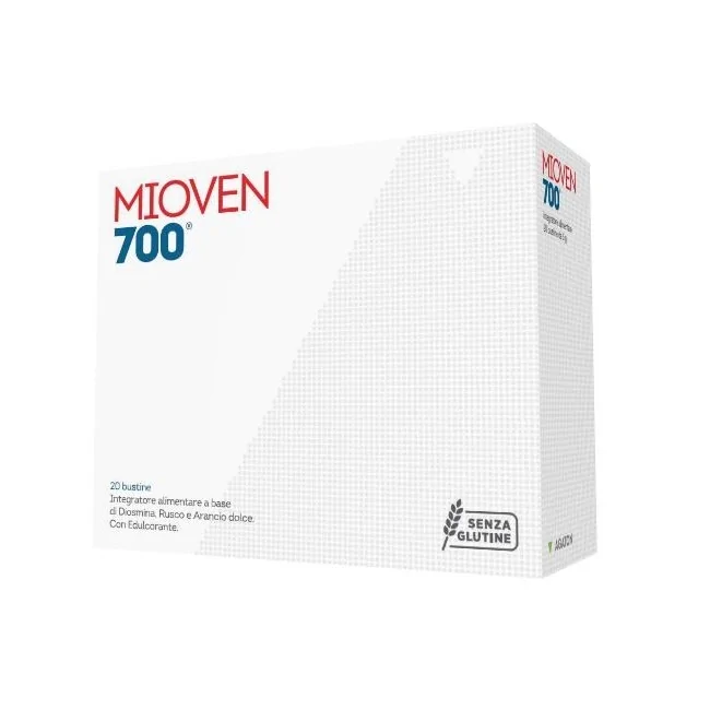 Mioven 700 bustine è un integratore alimentare a base di diosmina, rusco e arancio dolce. Il rusco è utile per favorire la fisiologica funzionalità del microcircolo, contrastando la pesantezza delle gambe, e per favorire la fisiologica funzionalità della circolazione venosa e del plesso emorroidario.
