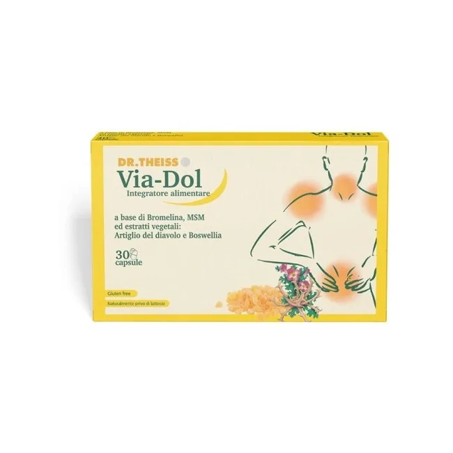 Naturwaren Theiss Via-dol è un integratore alimentare a base di estratti vegetali (artiglio del diavolo, salice, boswellia), formulato per favorire la funzionalità articolare e contrastare gli stati di tensione localizzati. Formato:30 Capsule