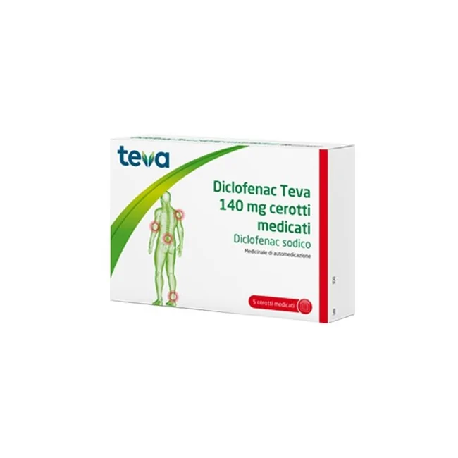Diclofenac Teva cerotti medicati 140 mg è un farmaco di automedicazione indicato per il dolori muscolari e alle ossa. Formato: 5 cerotti