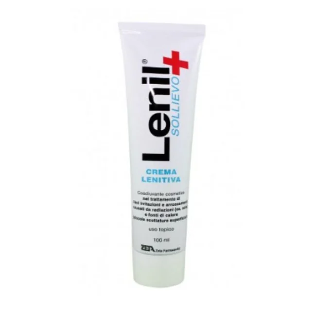 Lenil Sollievo è una crema lenitiva coadiuvante cosmetico nel trattamento di lievi irritazioni e arrossamenti causati da radiazioni solari. Tubo da 100 ml