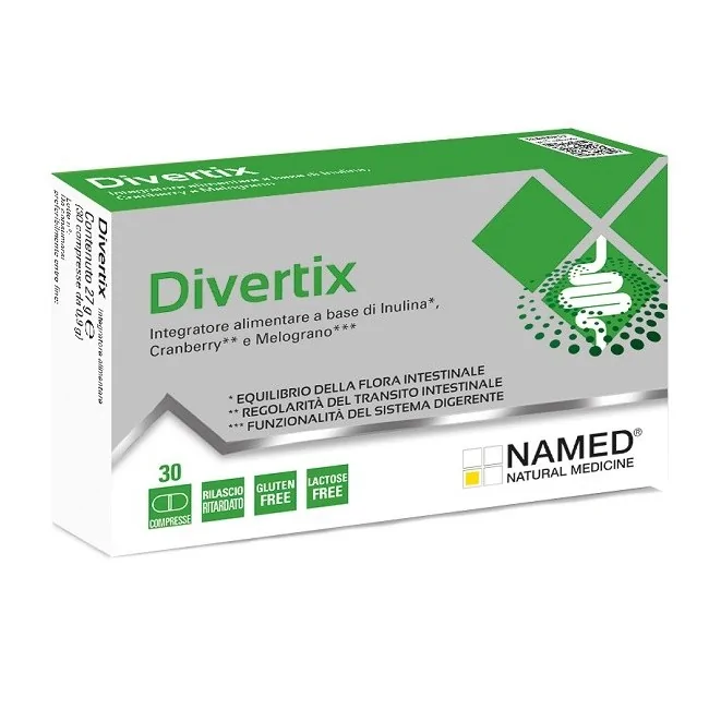 Divertix compresse è un integratore alimentare a base di inulina, estratto di melograno e succo di cranberry. L'inulina favorisce l'equilibrio della flora intestinale, il melograno contribuisce alla funzionalità del sistema digerente. Inoltre, il cranberry supporta la regolarità del transito intestinale ed esplica un'azione antiossidante.