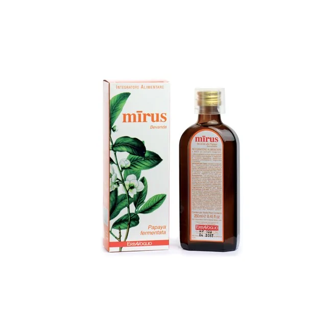Erbavoglio Mirus Bevanda Papaya è un integratore alimentare liquido a base di papaya fermentata, finocchio, carciofo, guaranà e tè verde, utile per supportare la digestione, le difese naturali e contrastare la stanchezza fisica e mentale. Formato: 250 ml