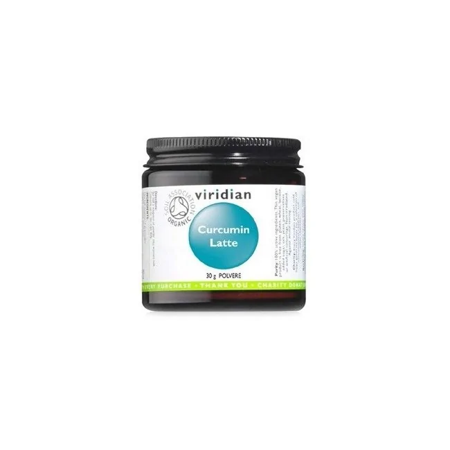 Natur Viridian Curcumin Latte 30g integratore alimentare che fornisce un mix di estratti vegetali che agiscono in sinergia per supportare l'apparato gastrointestinale e cardiocircolatorio, ad azione antiossidante.