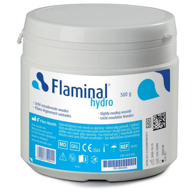 Flaminal Hydro è un idrogel colloidale innovativo, appartenente a una nuova classe di medicazioni per ferite, gli alginogel enzimatici. Questo prodotto è specificamente formulato per la gestione delle ferite con essudato leggero o moderato. Formato: 500 grammi