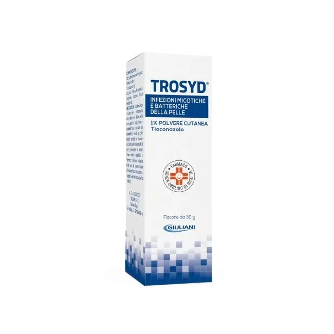 Trosyd Polvere Cutanea è un farmaco di automedicazione a base di tioconazolo indicato per debellare le micosi della pelle. Formato: 30 grammi