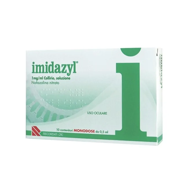 Imidazyl collirio è un farmaco di automedicazione a base di nafazolina utile per calmare bruciore, fotofobia, iperemia, eccessiva lacrimazione