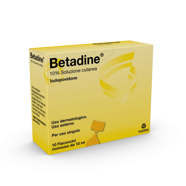 Si rivolga al medico o al farmacista prima di usare Betadine 10% Soluzione cutanea. Betadine 10% Soluzione cutanea è solo per uso esterno e non deve essere applicato su cute gravemente lesa o su ampie superfici.
