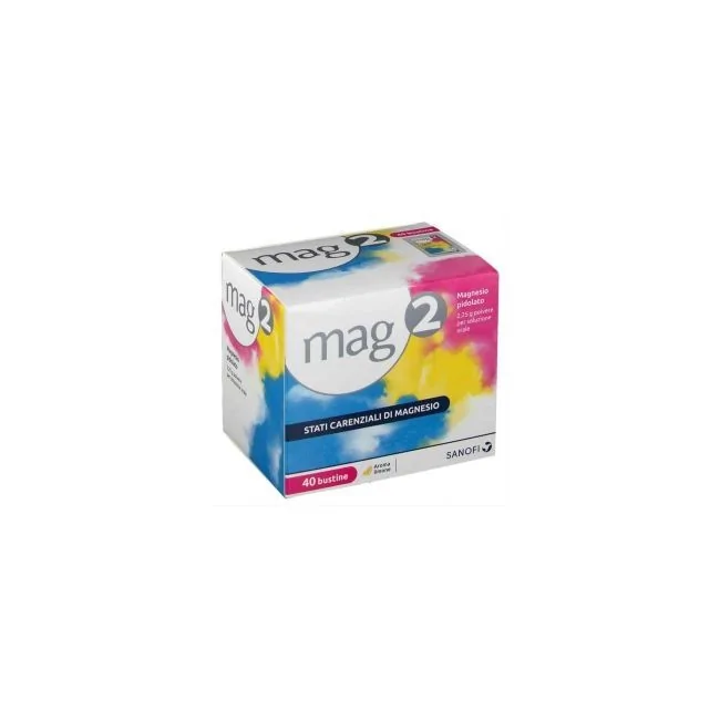 Mag 2 granulato in confezione da 40 bustine è un farmaco a base di magnesio pidolato utile in caso di stanchezza ed affaticamento. Formato: 40 bustine