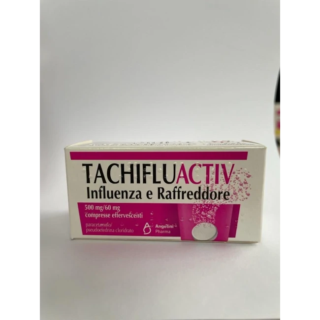 Tachifluactiv è un medicinale a base di paracetamolo e fenilefrina, indicato per il trattamento sintomatico dell'influenza e del raffreddore, agendo efficacemente su febbre, dolore e congestione nasale. Formato: 10 compresse effervescenti