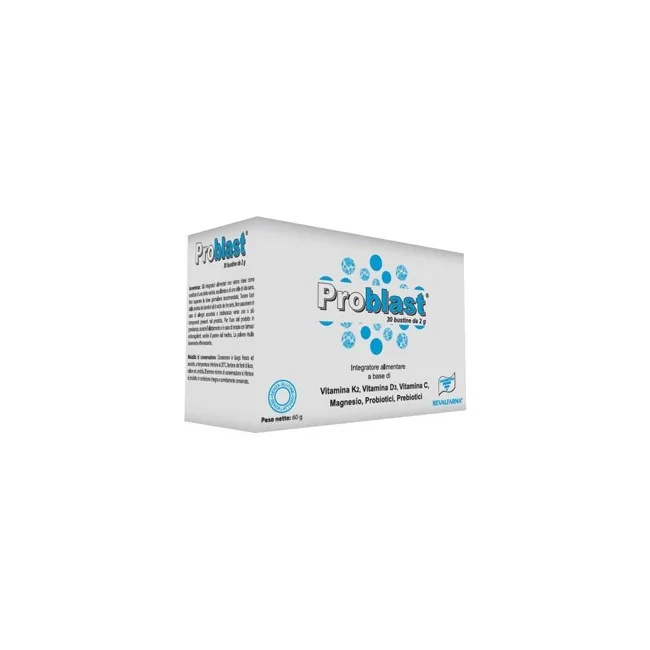 Problast bustine è un integratore alimentare a base di vitamina K2, vitamina D3, magnesio, probiotici e prebiotici.