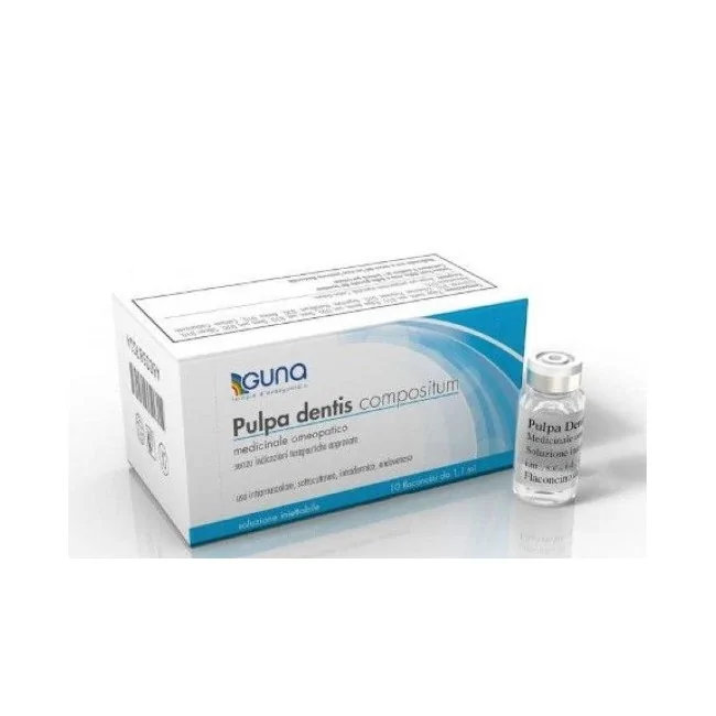 Guna Pulpa Dentis Compositum 10 fiale è un rimedio omeopatico preparato attraverso un processo di diluizione e dinamizzazione, che consiste nel diluire ripetutamente una sostanza di partenza (vegetale, animale o minerale) e nel sottoporla a scuotimenti energici. Questo processo, secondo i principi dell'omeopatia, potenzia l'azione del rimedio.