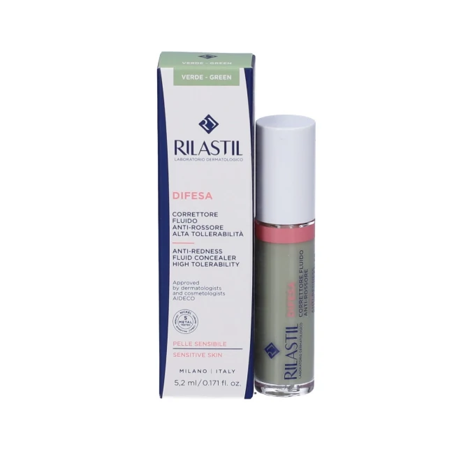 Il Rilastil Correttore Fluido Anti-rossore Verde di Istituto Ganassini neutralizza otticamente rossori localizzati, couperose e rosacea. La sua formula ad alta tollerabilità è ideale per pelli sensibili e reattive, offrendo una coprenza modulabile. Formato: 8,5 ml