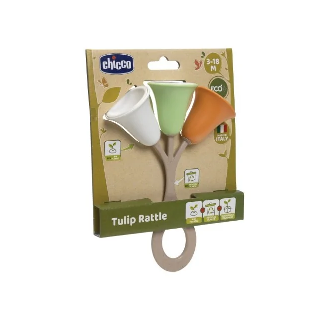 Il Chicco Trillino Tulipano Eco unisce l'attenzione per l'ambiente al design studiato per lo sviluppo del neonato. Questo sonaglio è realizzato con materiali sostenibili (spesso bioplastica o plastica riciclata) e presenta una forma ergonomica e colorata. È perfetto per stimolare i sensi del bambino a partire dai 3 mesi, incoraggiando la presa, l'udito e la manualità in modo ecologico.
