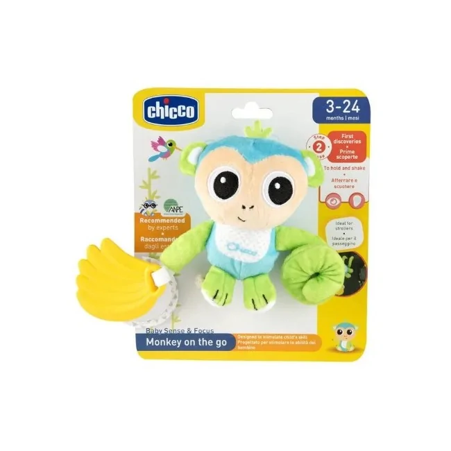 Il Chicco Gioco Passeggio Scimmia è un colorato e simpatico compagno di viaggio pensato per intrattenere il bambino quando è nel passeggino, nell'ovetto o nella culla. Questo giocattolo a sospensione è un vero e proprio centro di attività in miniatura, progettato per catturare l'attenzione del neonato e stimolare lo sviluppo delle sue capacità sensoriali e motorie.