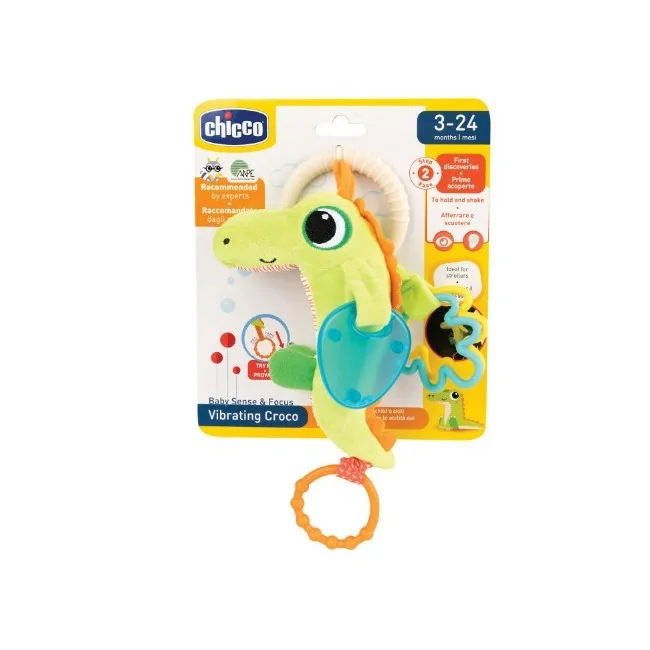 Chicco Coccodrillo Prime Attività è un vivace giocattolo in tessuto per neonati, ideale per stimolare i sensi e la motricità. Dotato di massaggiagengive, sonaglio e un divertente effetto vibrazione quando viene tirato, è facilmente agganciabile a passeggini e culle. Formato: 1 pezzo