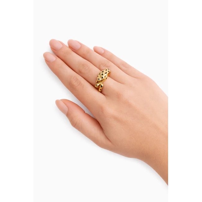 Anello pantera è un gioiello dal design scultoreo che celebra la forza del predatore. L'accessorio perfetto per chi sceglie un'eleganza senza confini. Formato: 1 pezzo