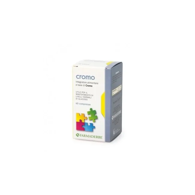 Farmaderbe Cromo è un integratore alimentare monoingrediente utile per il metabolismo del glucosio. Formato: 60 compresse
