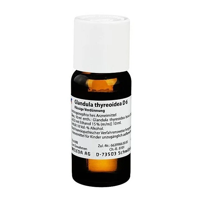 Weleda Glandula Thyreoidea D6 gocce 50 ml è un rimedio omeopatico preparato attraverso un processo di diluizione e dinamizzazione, che consiste nel diluire ripetutamente una sostanza di partenza (vegetale, animale o minerale) e nel sottoporla a scuotimenti energici. Questo processo, secondo i principi dell'omeopatia, potenzia l'azione del rimedio.