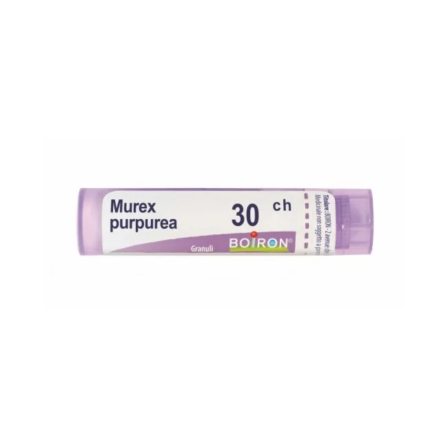 Boiron Murex purpurea 30 ch granuli è un rimedio omeopatico preparato attraverso un processo di diluizione e dinamizzazione, che consiste nel diluire ripetutamente una sostanza di partenza (vegetale, animale o minerale) e nel sottoporla a scuotimenti energici. Questo processo, secondo i principi dell'omeopatia, potenzia l'azione del rimedio.