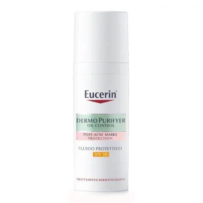 Eucerin Dermopurificante Fluido Protettivo è un cosmetico per pelle a tendenza acneica che protegge dalle macchie e opacizza.