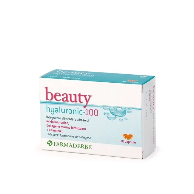 Beauty hyaluronic 100 è un integratore a base di acido ialuronico, collagene marino e vitamine c da fonte vegetali utile per il benessere della pelle. Formato: 30 capsule