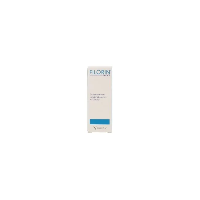 Nalkein Filorin Gocce è una soluzione con xilitolo e acido ialuronico in flacone da 20 ml.
