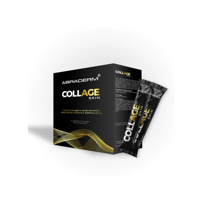 Braderm Collage Skin è un integratore alimentare liquido di ultima generazione, formulato per contrastare i segni del tempo e restituire compattezza, idratazione e luminosità alla pelle. Grazie alla sua formula sinergica ad alta concentrazione di Collagene Idrolizzato, Acido Ialuronico e Antiossidanti, agisce dall'interno per stimolare il rinnovamento cellulare e proteggere la struttura cutanea.