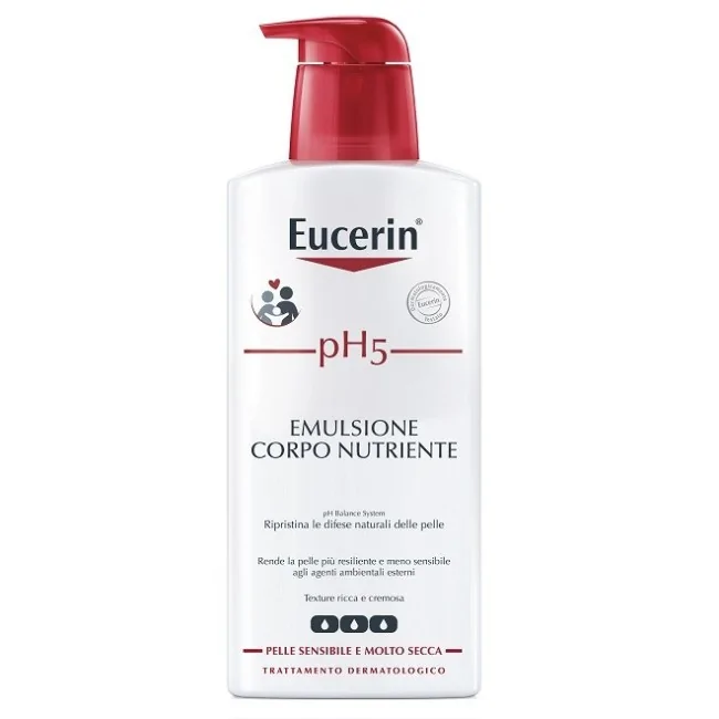 Eucerin Ph5 Emulsione Corpo Nutriente è utile in caso di pelle sensibile, secca o tendente ad allergie.