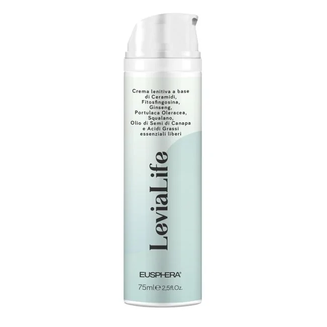 Eusphera Levialife Crema è una crema idratante, emolliente e lenitiva, ideale per pelli secche e sensibili. La sua formula innovativa con Ceramidi, Olio di Canapa e Ginseng svolge un'azione protettiva per il benessere e il ripristino della barriera cutanea. Formato: 70 ml
