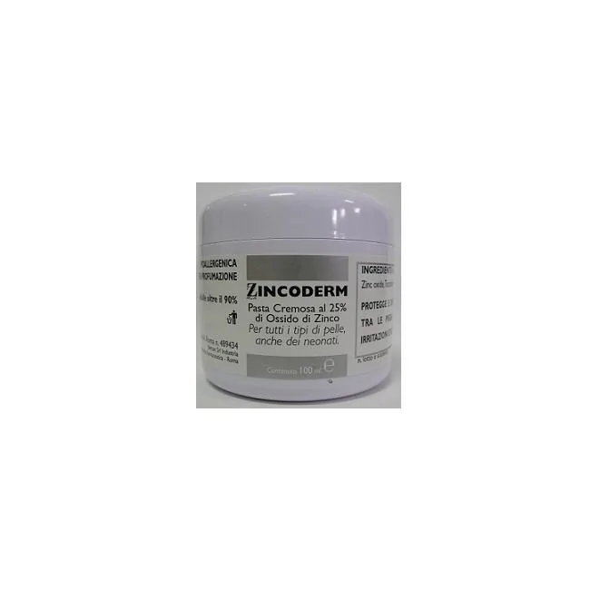 Zincoderm pasta cremosa al 25% di ossido di zinco. Per tutti i tipi di pelle, anche dei neonati. Prodotto cosmetico.
