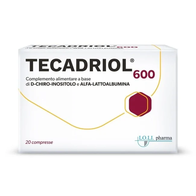 Lo. Li. Pharma Tecadriol 600 20 Compresse è un integratore D-chiro-inositolo e alfa-lattoalbumina ideale in caso di ridotto apporto con la dieta o di aumentato fabbisogno di tali sostanze