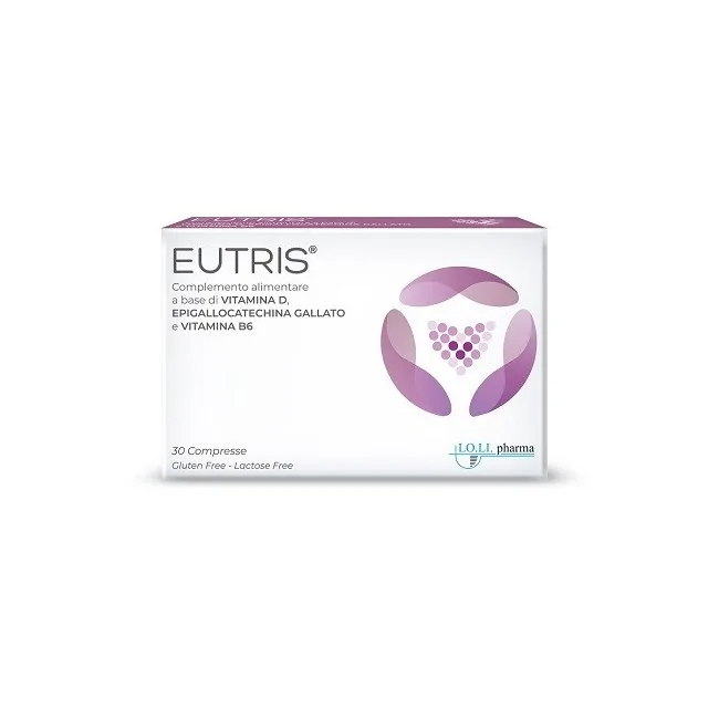 Lo. Li. Pharma Eutris 30 Compresse è un complemento alimentare a base di vitamina D, epigallocatechina gallato e vitamina B6 utile per la divisione cellulare e la regolazione dell'attività ormonale. Formato: 30 compresse