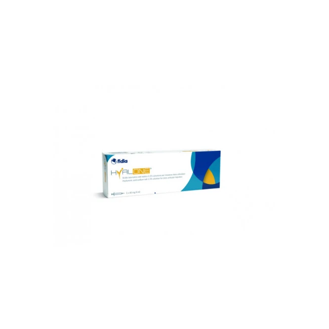 Hyalone Siringa Intra-articolare (1,5%, 60 mg/4 ml) è un sostituto temporaneo del liquido sinoviale per il trattamento di osteoartriti e artropatie degenerative. A base di acido ialuronico ad alto peso molecolare, riduce il dolore e migliora la funzionalità articolare di ginocchio e anca fino a sei mesi. Formato: 4 ml