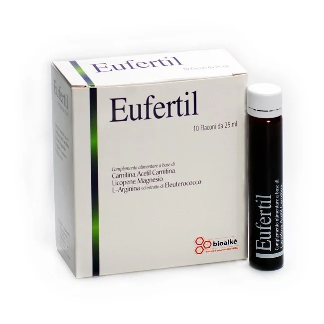 Eufertil è un complemento alimentare a base di Carnitina, Acetil Carnitina, Licopene, Magnesio, L-Arginina ed estratto di Eleuterococco, utile per stimolare la fertilità e contrastare la stanchezza e l'affaticamento