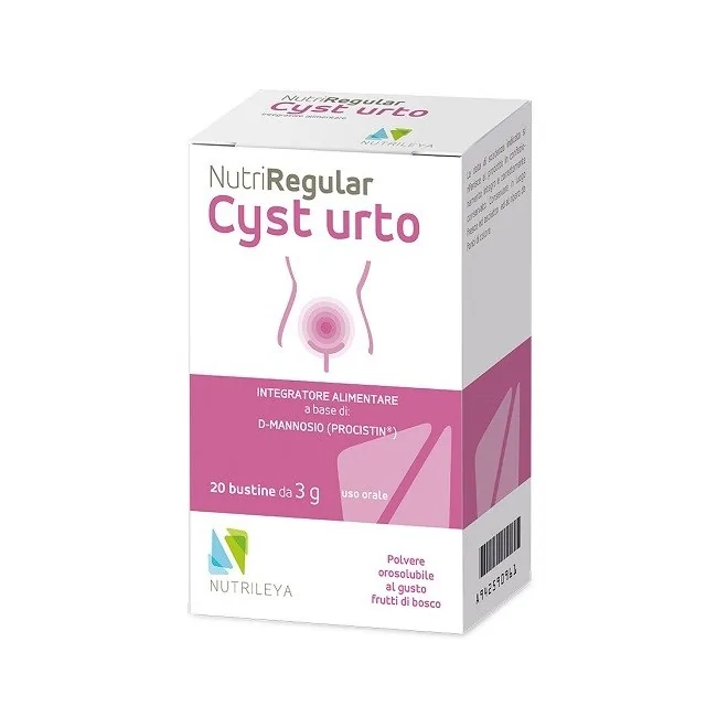 Nutriregular Cyst Urto è un integratore alimentare a base di D-Mannosio utile per contrastare le infezioni delle vie urinarie. Formato 20 bustine