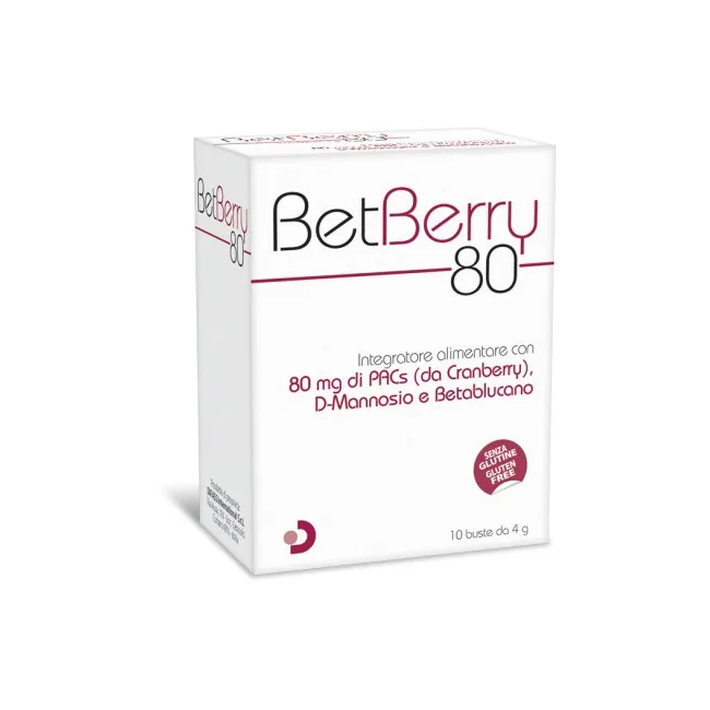 Difass International Betberry 80 di Difass è un integratore alimentare con Betaglucano e Proantocianidine (PACs) da Cranberry (vaccinium macrocarpon). Nello specifico, l'integratore alimentare Bifas Betberry 80 sviluppa effetti favorevoli e protettivi sul tratto urovescicale.