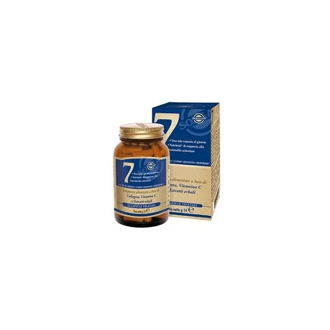 Solgar 7 capsule è un complemento alimentare di collagene, vitamina C ed estratti erbali, utile per trattare i disturbi articolari. Formato: 30 capsule