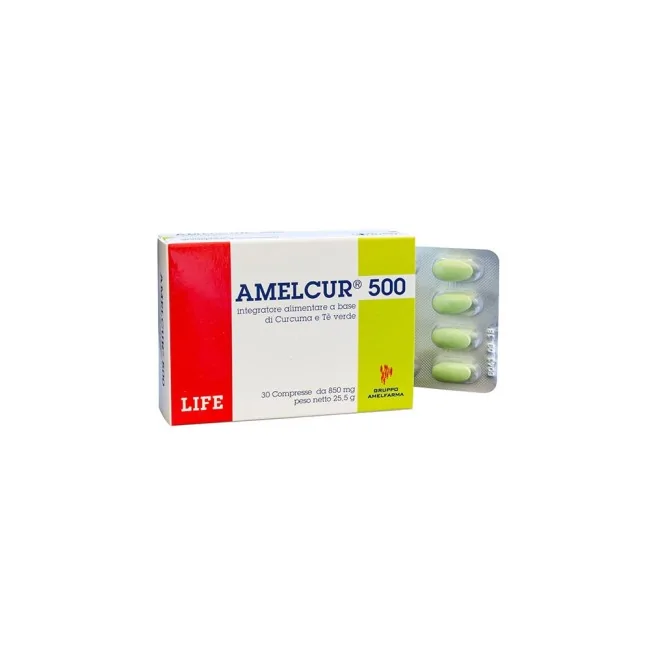 Amelcur 500 compresse è un integratore alimentare a base di Curcuma e Tà Verde.