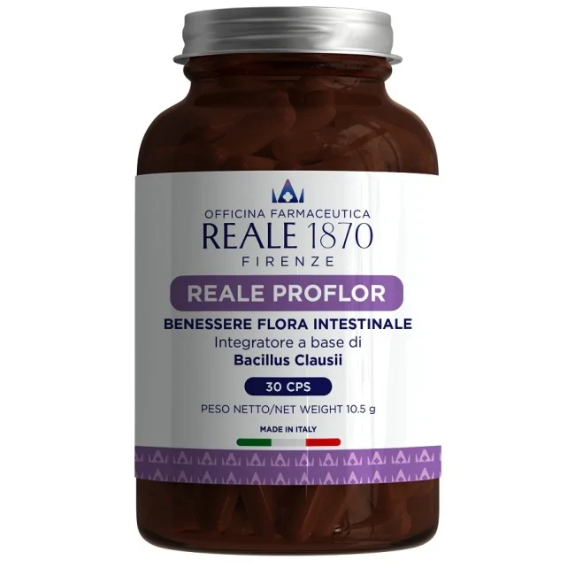 Reale Proflor capsule è un integratore alimentare a base di Bacillus clausii utile per favorire l'equilibrio della flora intestinale. Formato: 30 capsule