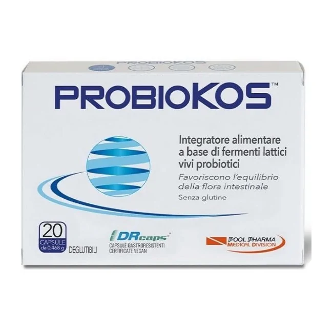 Probiokos è un integratore utile per favorire l'equilibrio della flora intestinale, che può essere alterata da diversi fattori, come antibiotici, stress, dieta scorretta e viaggi. Formato: 20 capsule