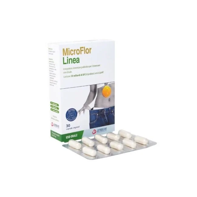 Cemon Microflor Linea è un integratore alimentare a base di probiotici (fermenti lattici vivi), specificamente formulato per favorire l'equilibrio della flora intestinale. Formato: 30 Capsule Vegetali
