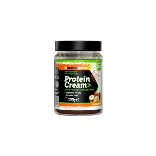 Namedsport Protein Cream hazelnut flavour è un alimento spalmabile con proteine del siero del latte, al gusto nocciola senza zuccheri aggiunti.