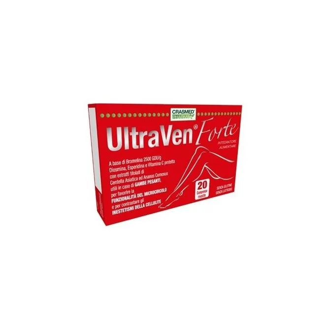 Ultraven Forte è un integratore alimentare formulato per contrastare le gambe pesanti, la cellulite e supportare il microcircolo, grazie a una miscela di Centella asiatica, ananas, diosmina, esperidina, bromelina e Vitamina C. Formato: 20 compresse